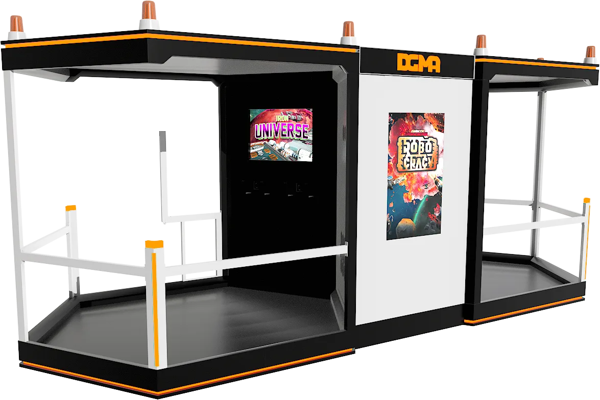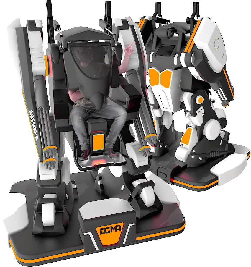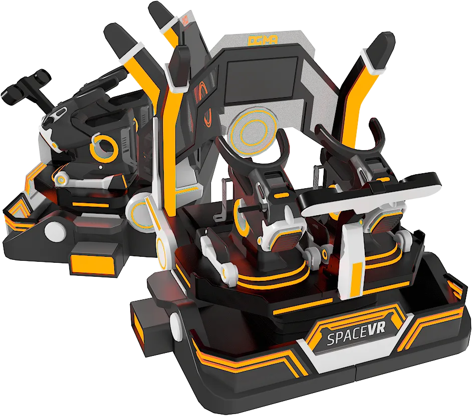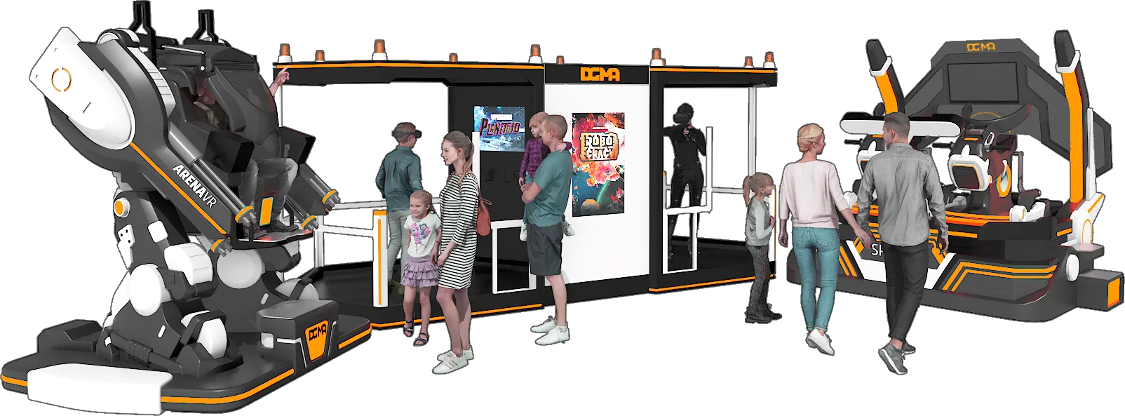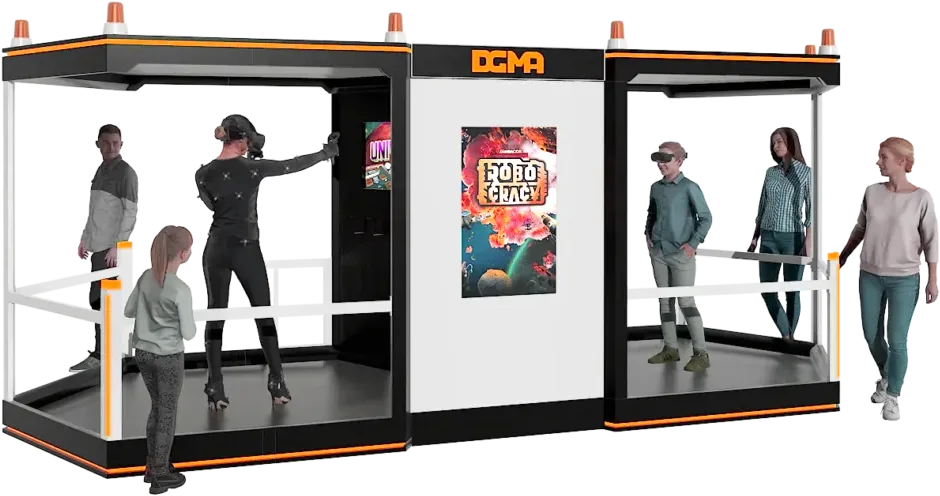 DGMA has developed a unique game engine for its attractions, which is a series of arcade action games in VR format. We have created our own game universe called Galactic Vertex, where players can travel through different worlds and fight with various enemies in the form of robots.